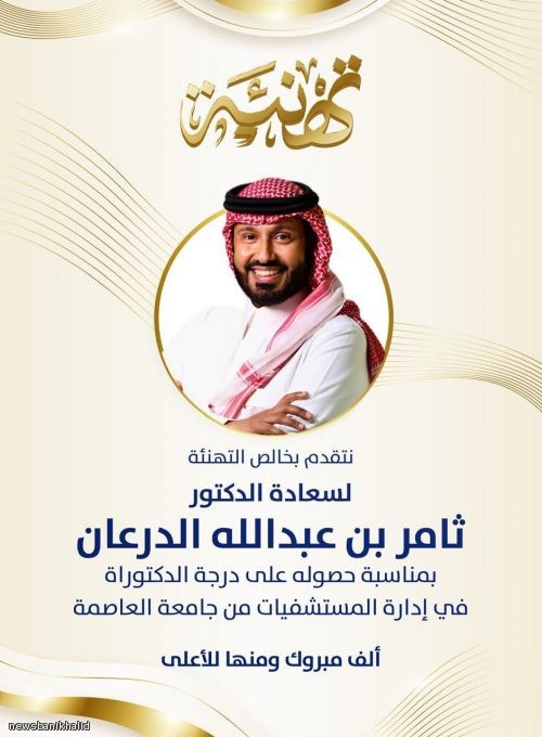 تهنئ وتبارك لإبننا ( (ثامر عبدالله الصليع الدرعان الخالدي )