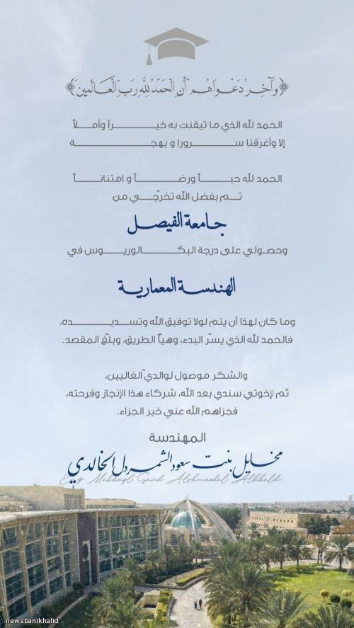 لتخرجه من ( جامعة الفيصل الهندسه المعماريه )
